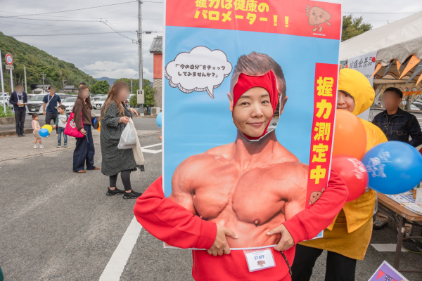 大人の方(とやってみたい子供たち)には握力測定を行い、肝疾患センターの医師、看護師、管理栄養士が運動やバランスのよい食事についての解説を行いました。